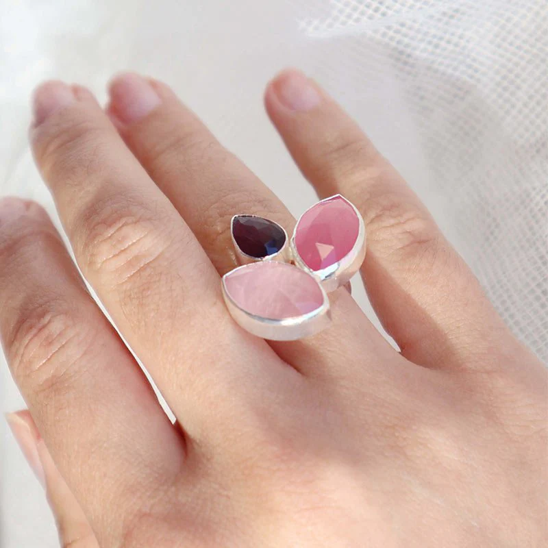 Cada anillo captura la esencia única de los cristales, creando un anillo deslumbrante y lleno de energía. Hará destacar tus manos.
