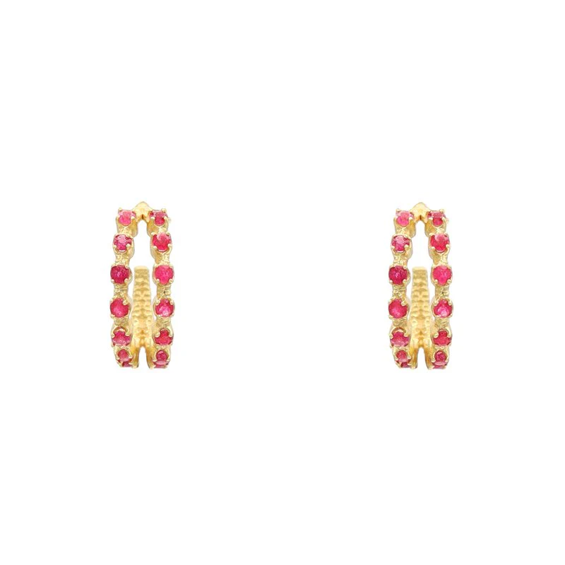 Pendientes de doble aro. Dos semi cículos que se unen en su inicio y final cubiertos por piedras.