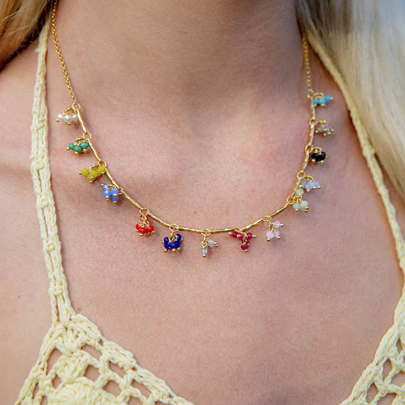 Collar formado por varias piedritas creando flores de diferentes colores.