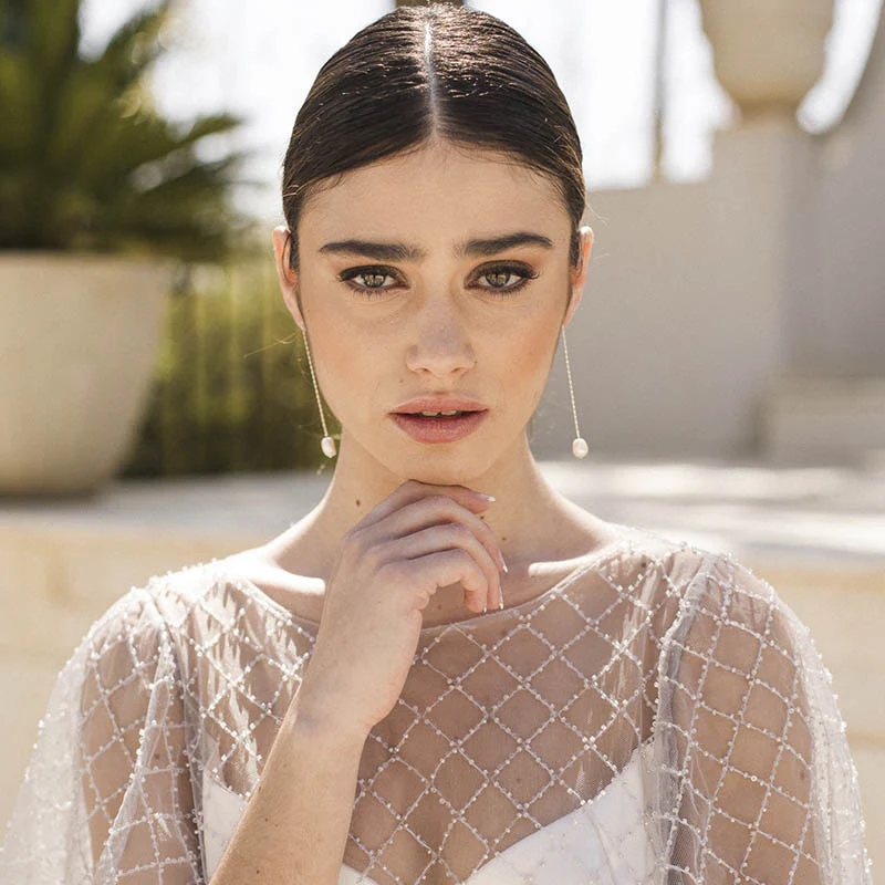 ¿Te casas y estás buscando los pendientes para tu boda? Sigue leyendo porque puede que estemos ante tus próximos pendientes de novia. Que te acompañarán ese día y después en un montón de ocasiones más. Pendientes Anastasia – Minimalismo con alma clásica Tipo de pendiente: Largo y fino, con cadena plateada y perla colgante Estilo: Romántico, minimalista y delicado Perfectos para: Rostros cuadrados o alargados Escotes redondos, barco o tipo halter Peinados sueltos con ondas o moños desenfadados Bodas bohemias, campestres o íntimas Los Pendientes Anastasia son una oda a la sencillez elegante. La perla cuelga al final de una delicada cadena dorada que se balancea suavemente al ritmo de la novia. Un diseño ligero pero con presencia, pensado para novias que buscan pendientes de novia sencillos pero con encanto. 👰 Consejo de estilo: Combínalos con vestidos de líneas fluidas o tejidos naturales como el crepé o el lino. Ideales también para novias con un velo ligero o sin velo.