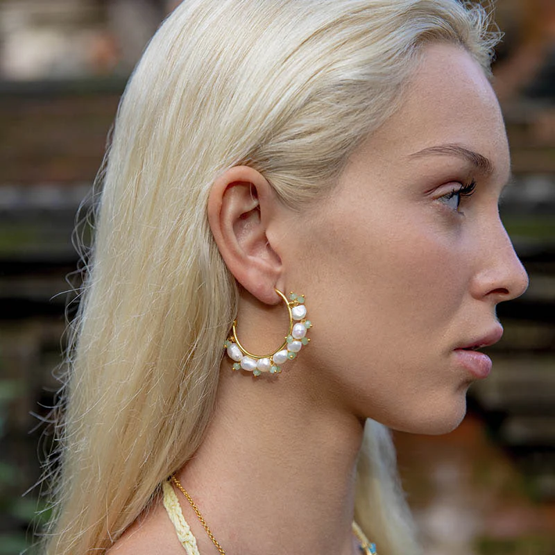 Pendientes Aros Gobio Perlas y Verde agua