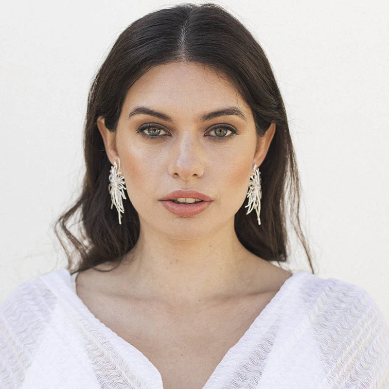 Pendientes con numerosas ramificaciones y una piedra en su centro.