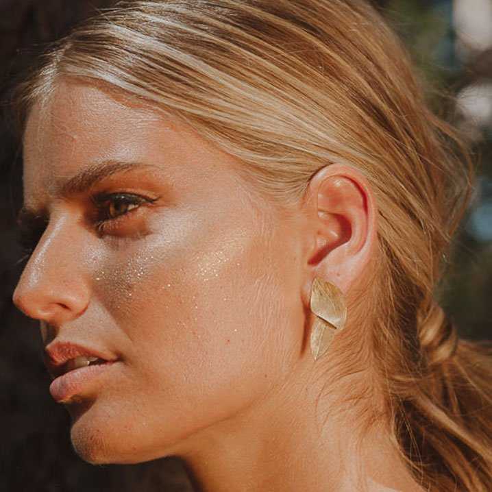 Pendientes formados por dos hojas artesanales en diferente tamaños. Diseño original, elegante y sofisticado. Son muy ligeros, como si no los llevaras. ¿No sabes qué ponerte? Estos pendientes seguro que te van perfectos.