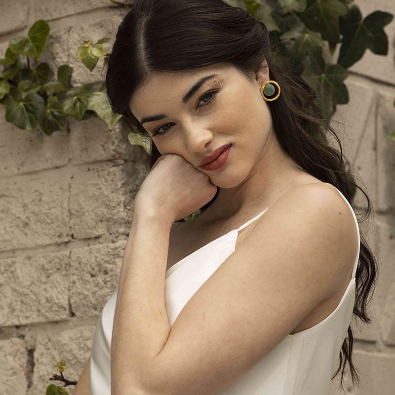 Pendientes con relieve formado por dos circunferencias, la interior de piedra y la exterior de líneas imperfectas que crean el círculo.